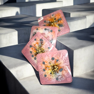 Dessous de verre, feuilles d'Or 18 Carats en résine époxy
