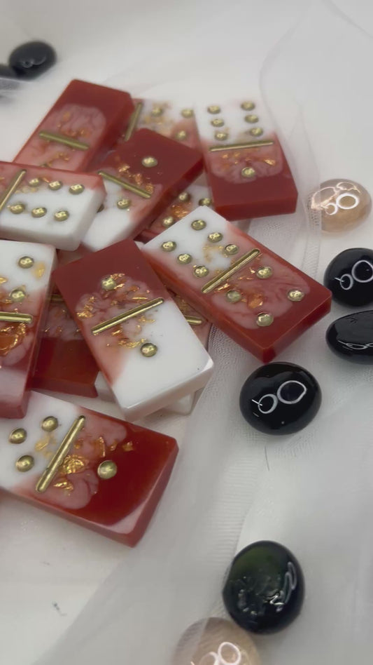 Play dominoes with a new style! This unique domino set, handcrafted from epoxy resin, combines vibrant colors and a stylish design. Each domino piece is a small work of art with a crystal-clear shine and a smooth surface. Ideal for game nights with friends, family gatherings, or as a unique gift. This domino set is not only a game, but also a stylish addition to any home.