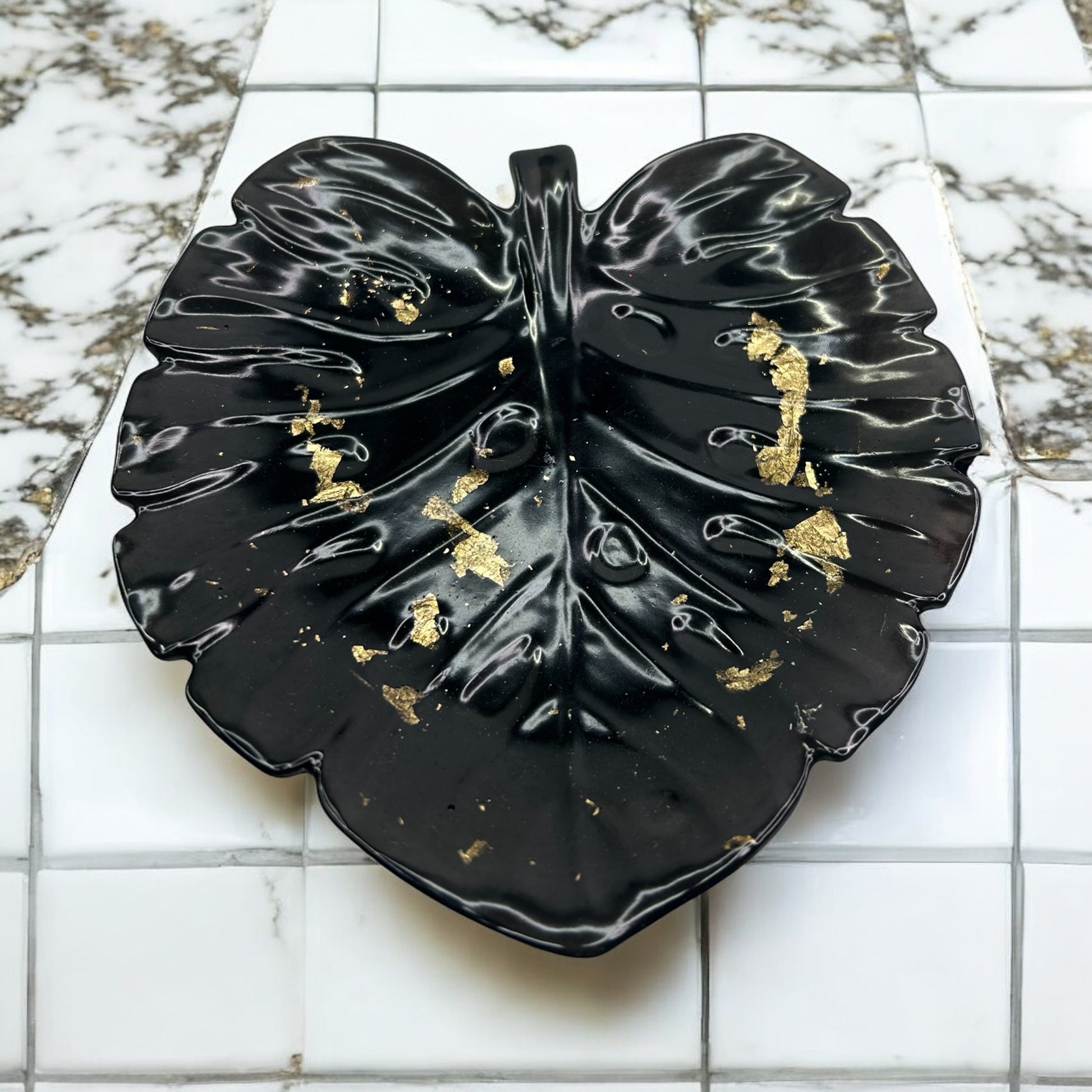 Feuille de Monstera vide-poche en résine époxy