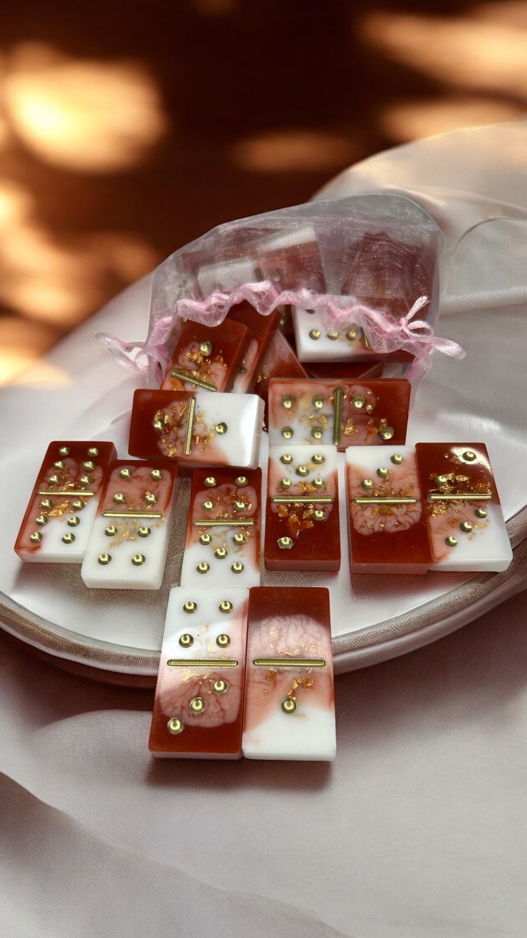 Discover a beautifully handcrafted domino set. Each piece is meticulously crafted from high-quality clear epoxy resin.