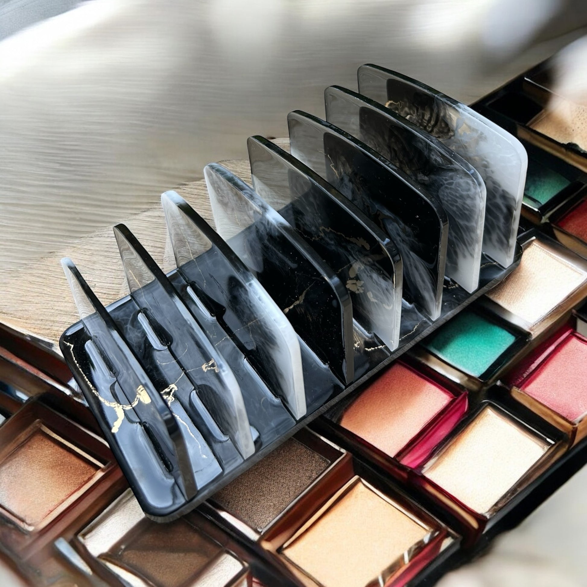 Makeup palette organizer, marble effect in epoxy resin