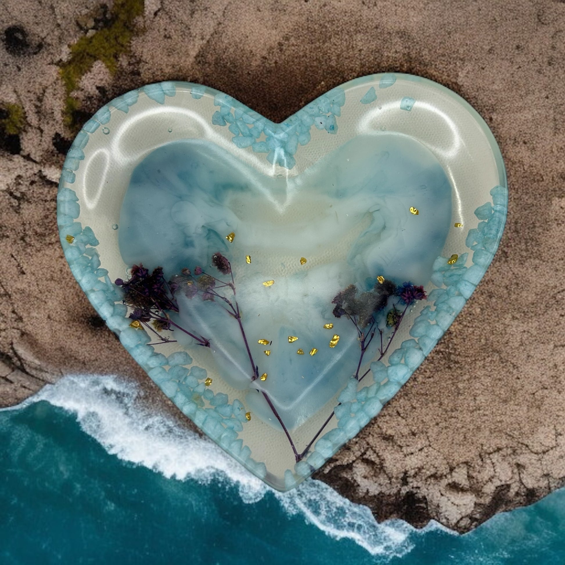 Magnificent heart-shaped pocket emptier made of epoxy resin, it will be ideal for storing your jewelry and accessories and will add a little decorative touch to your interior.