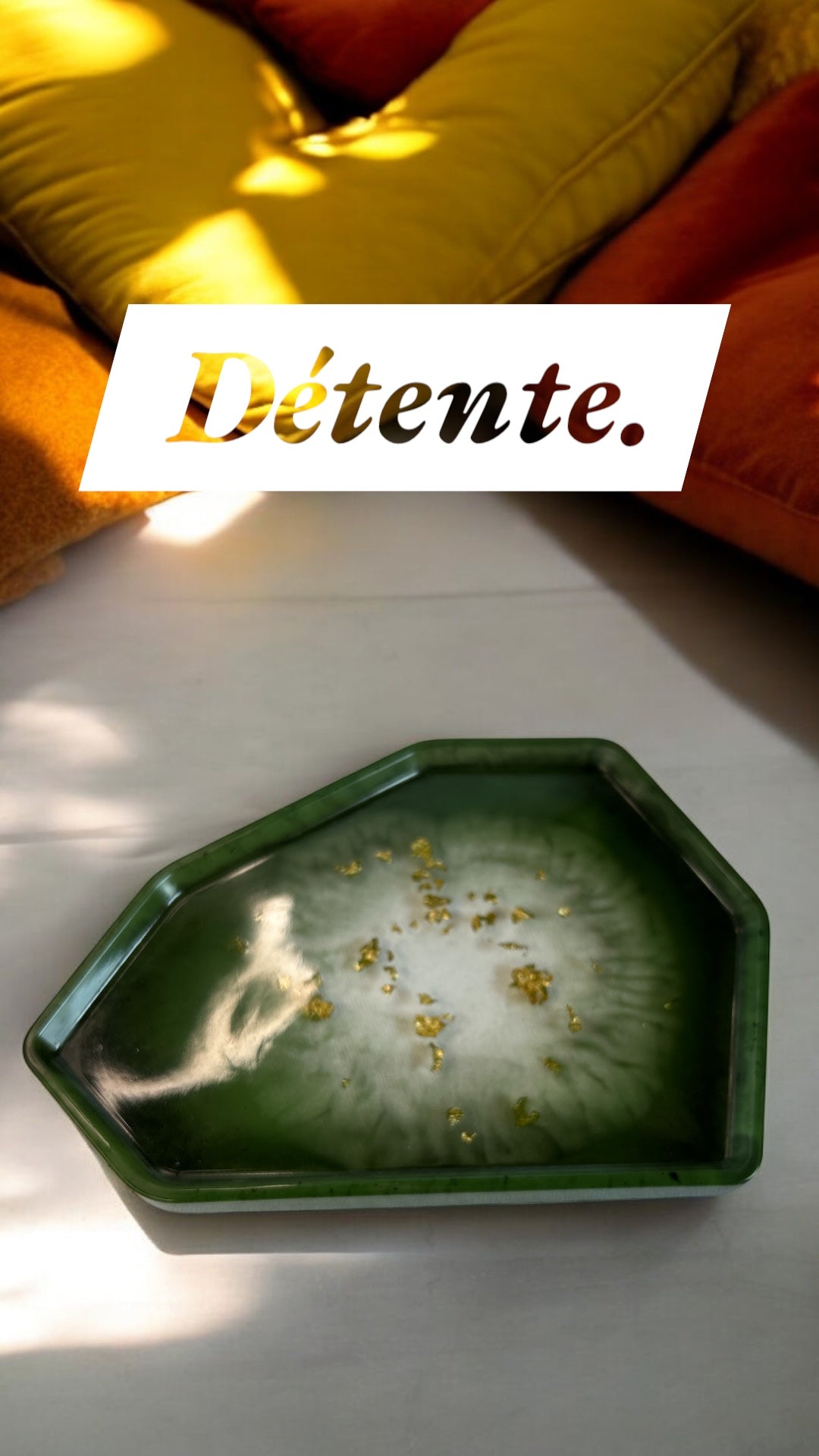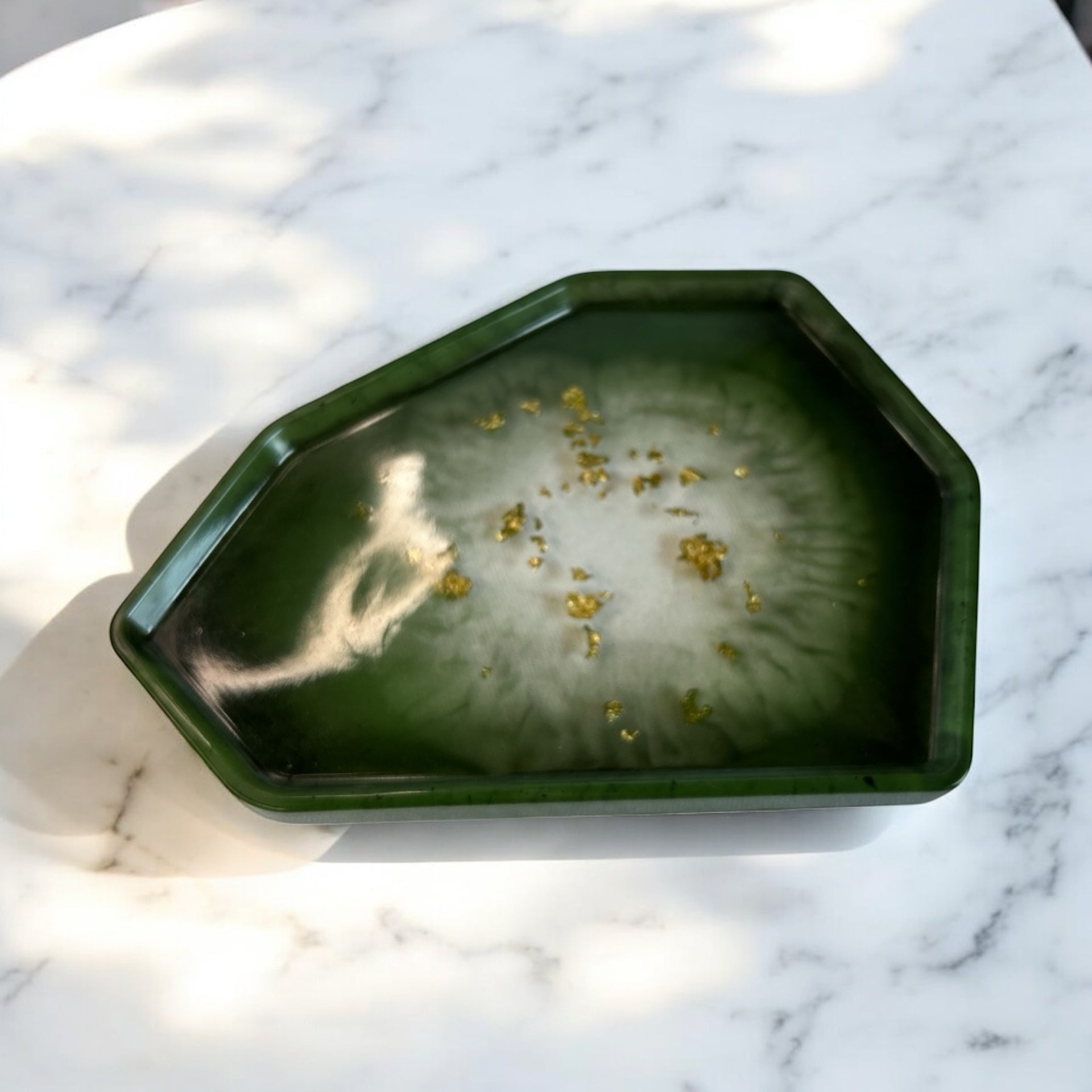 Plateau géométrique avec des feuilles d'Or 18 Carats en résine époxy