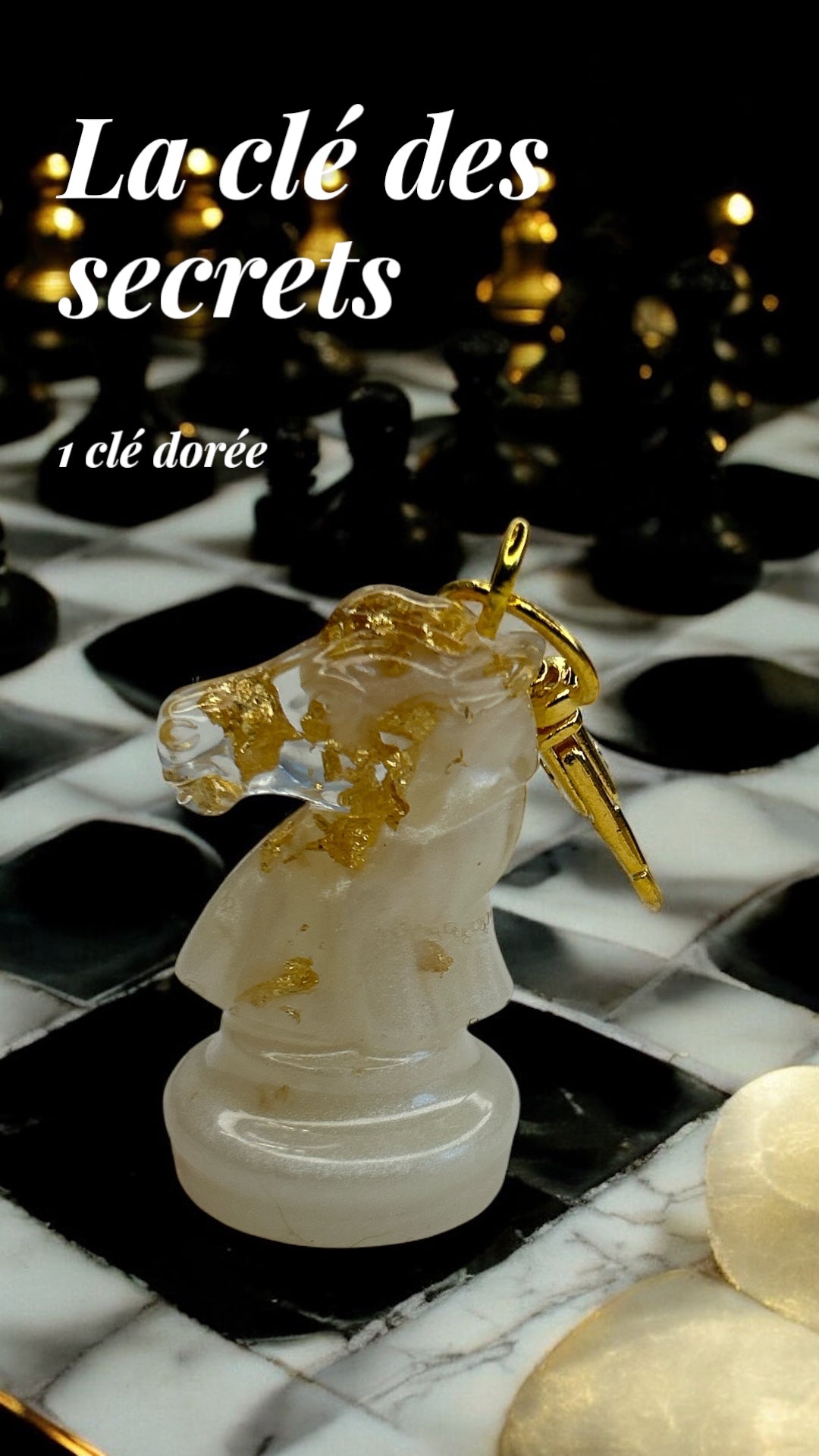 Porte-clés d'échecs avec des feuilles d'Or 18 Carats en résine époxy