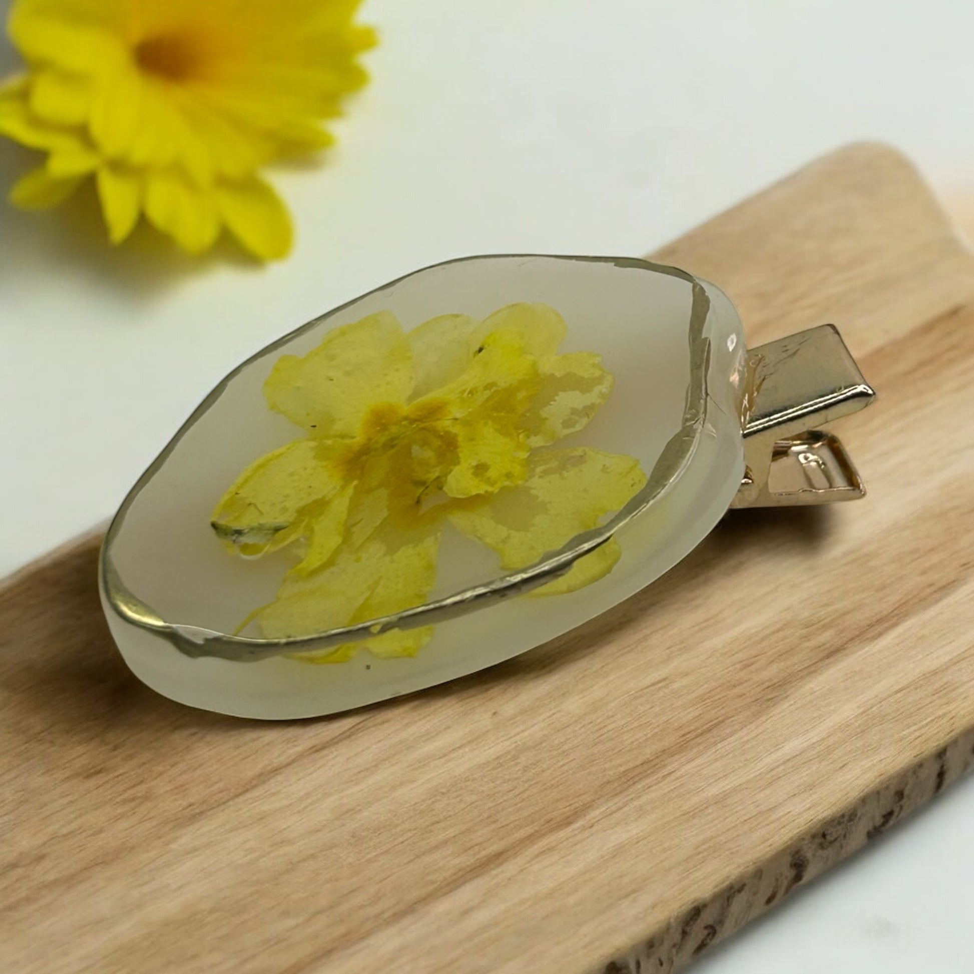 Barrette à cheveux avec des fleurs séchées en résine époxy