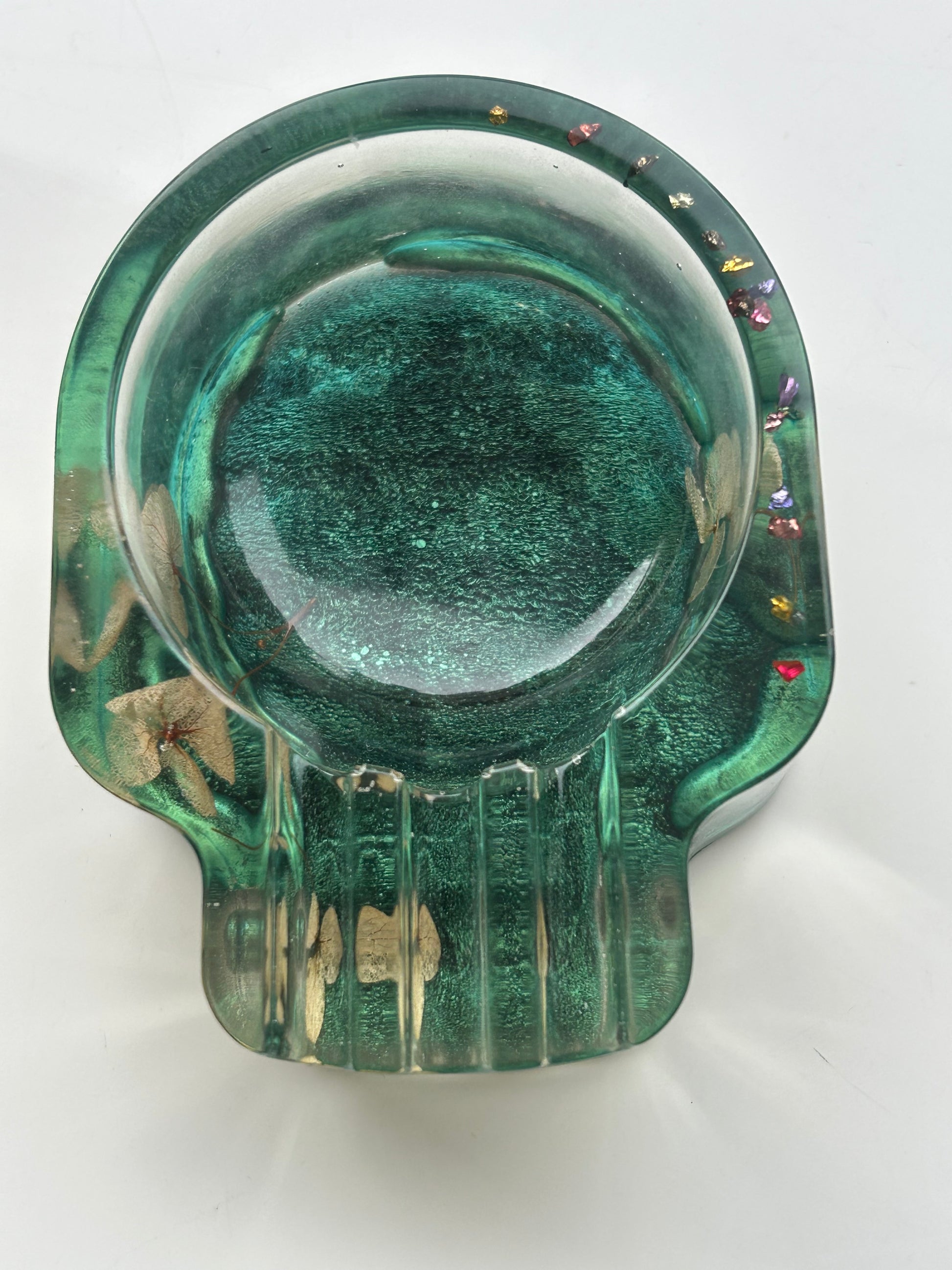 Plongez dans l’univers florale avec ce cendrier artisanal en forme de crâne, conçu à la main en résine époxy transparente et agrémenté de fleures séchées .