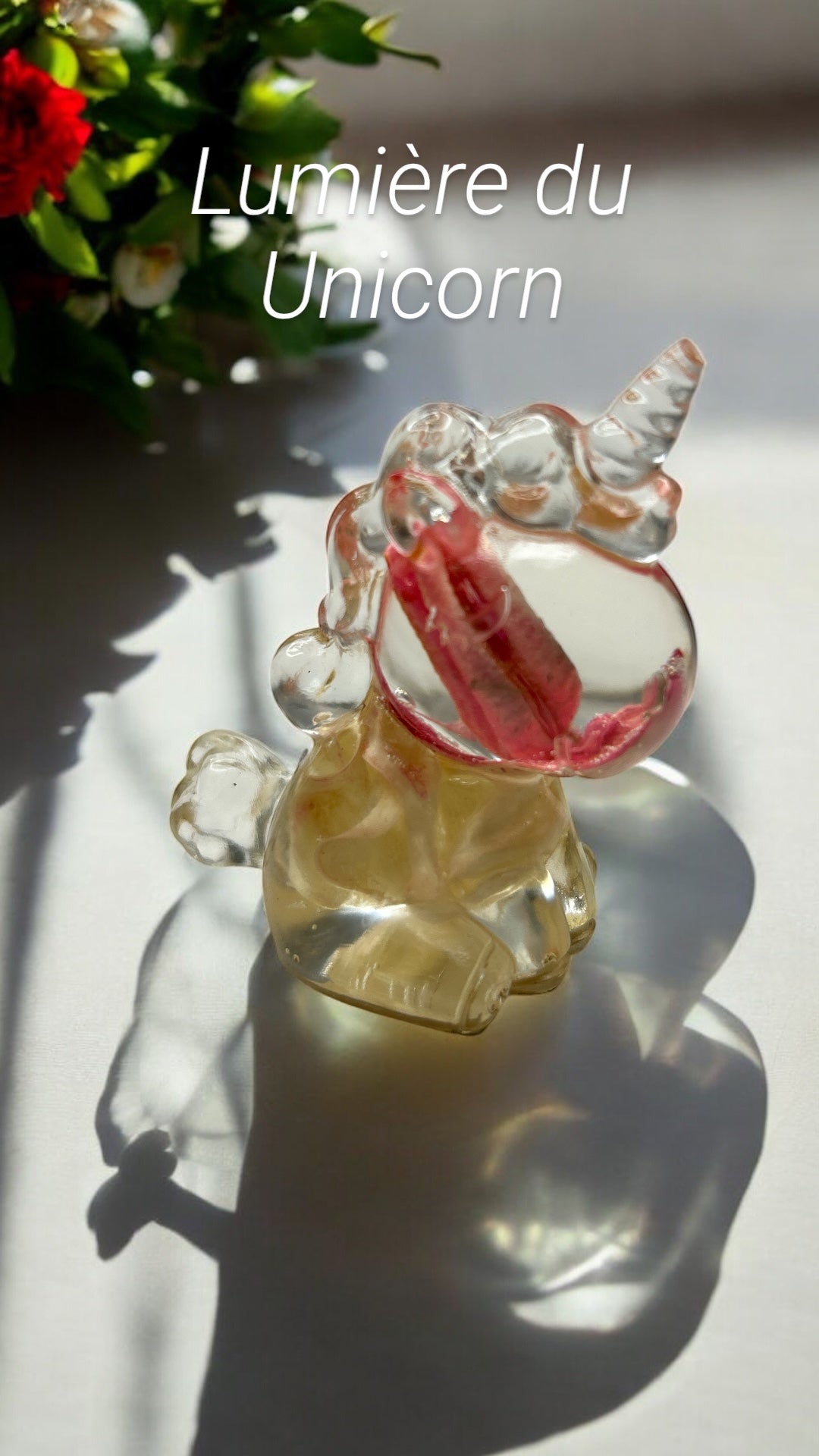 Figurine Licorne avec des fleures séchées en résine époxy