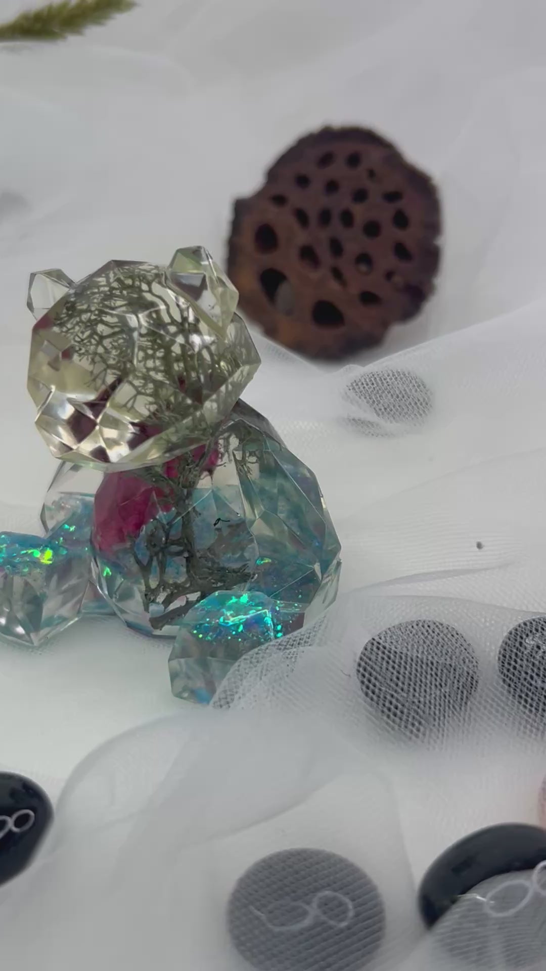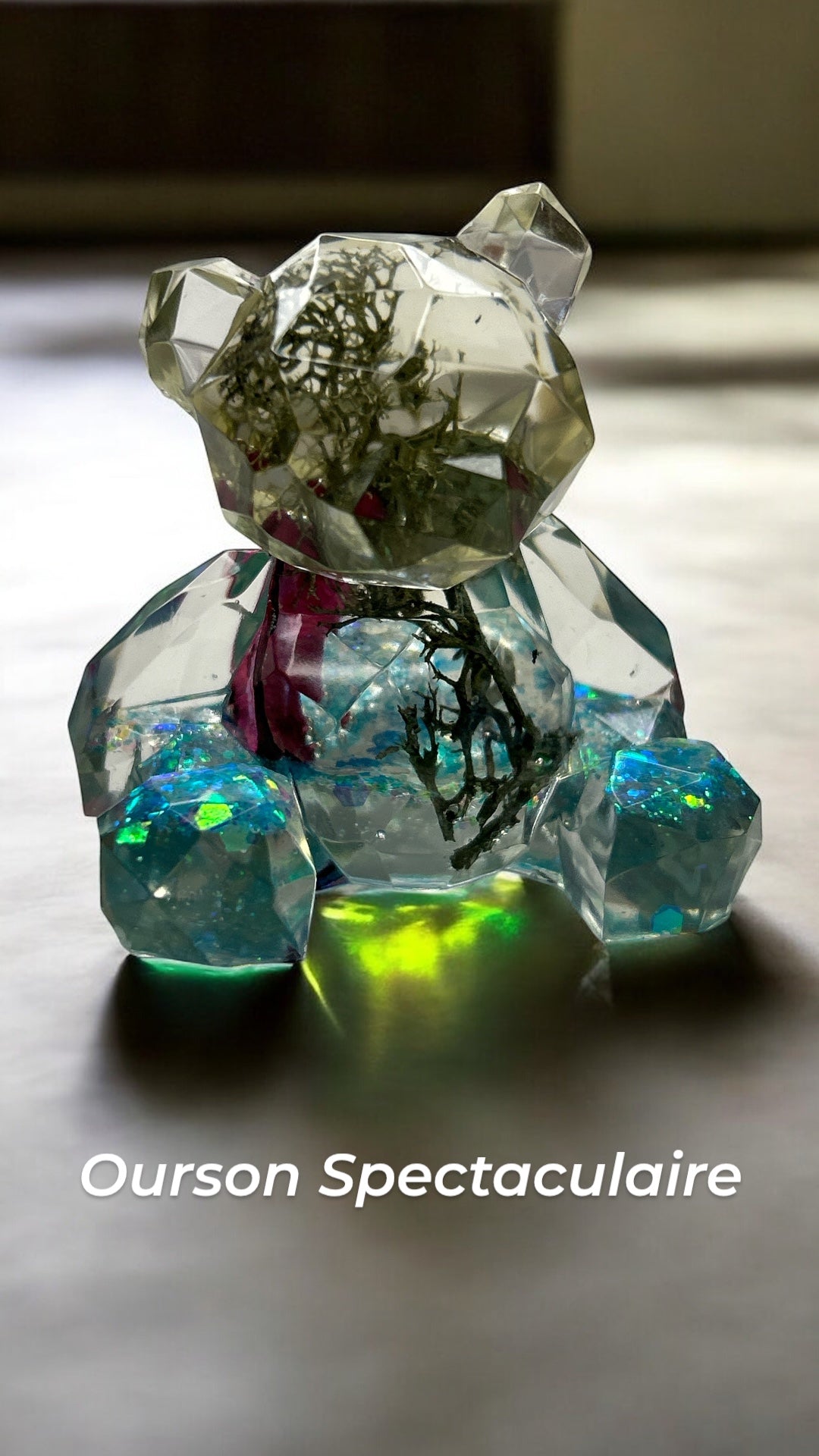 Figurine Ours géométrique avec des fleures séchées en résine époxy