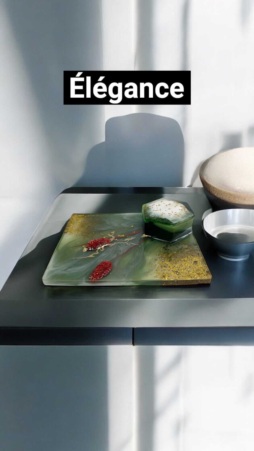 Découvrez la beauté et la fonctionnalité de mon plateau fait main en résine époxy de haute qualité.