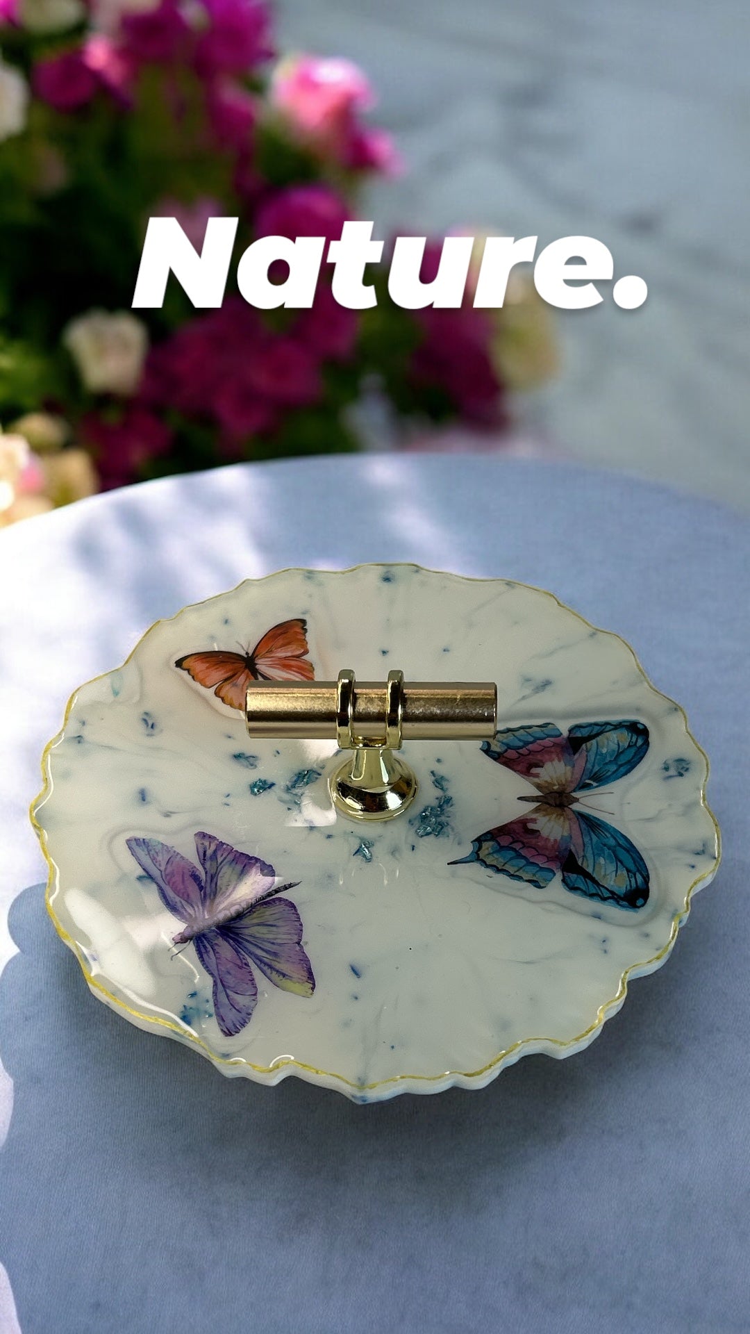 Couleur : Blanc avec des papillons et des paillettes bleu